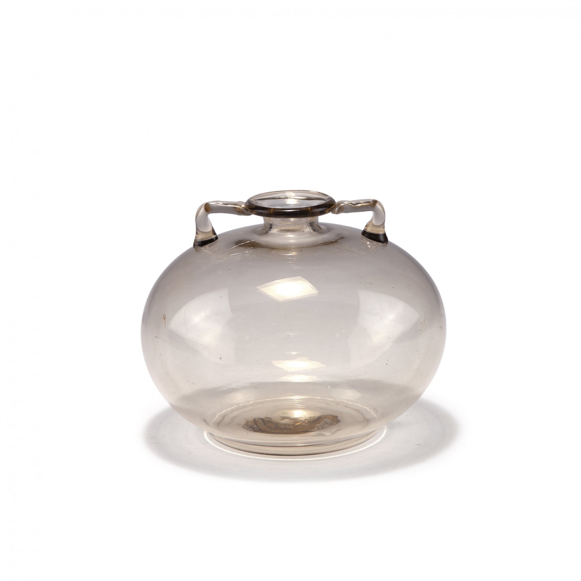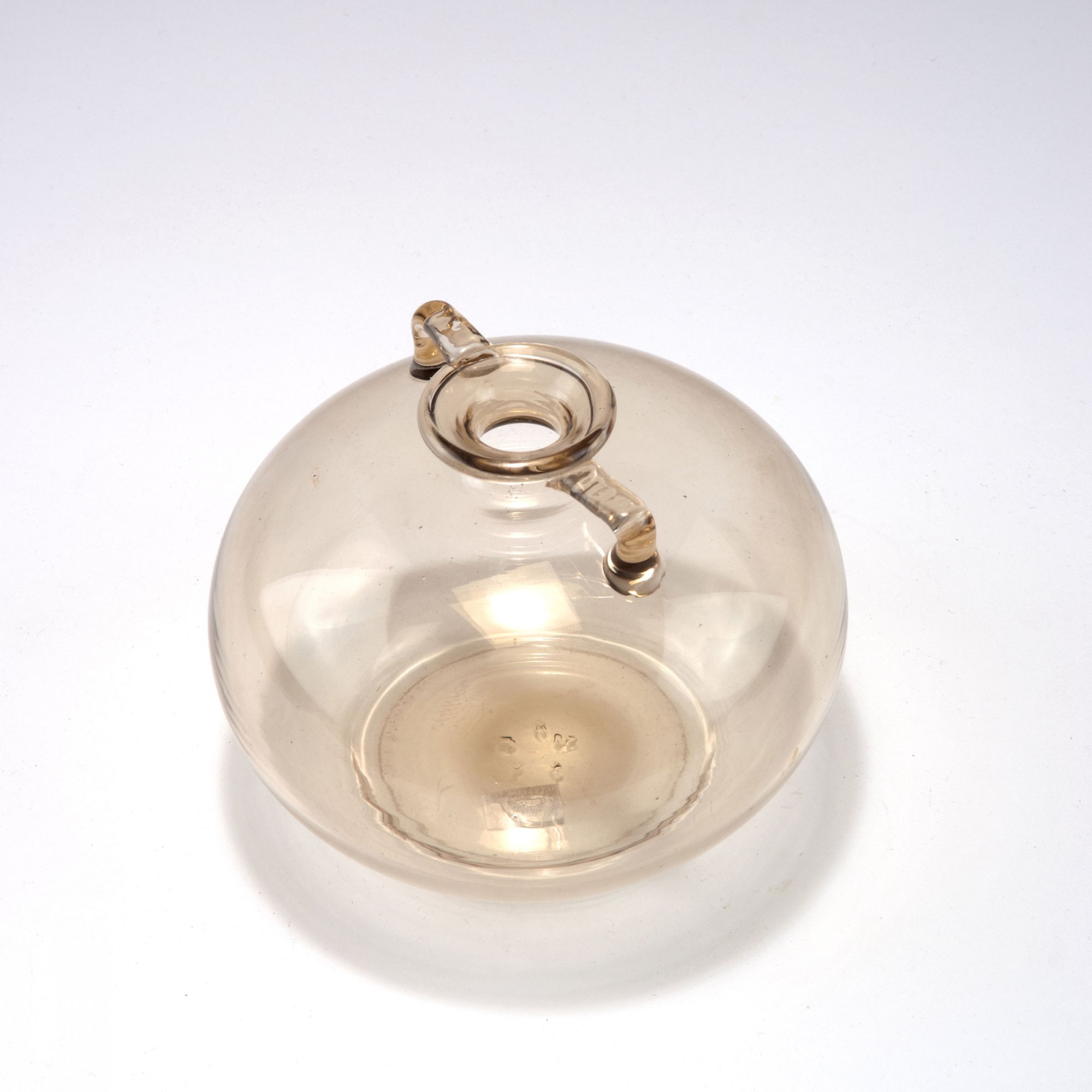 Vittorio Zecchin. Vase with handles, c1922. H. 11.5 cm. Made by Venini & C. Pale amber glass. Marked: venini murano ITALIA (acid stamp).