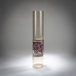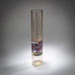 H. 40.2 cm. Execution: Barovier & Toso. Consists of three cylinders. The center is in clear glass with fused-in round murrine in red, white, blue, and orange. The top and bottom are of fumé glass.