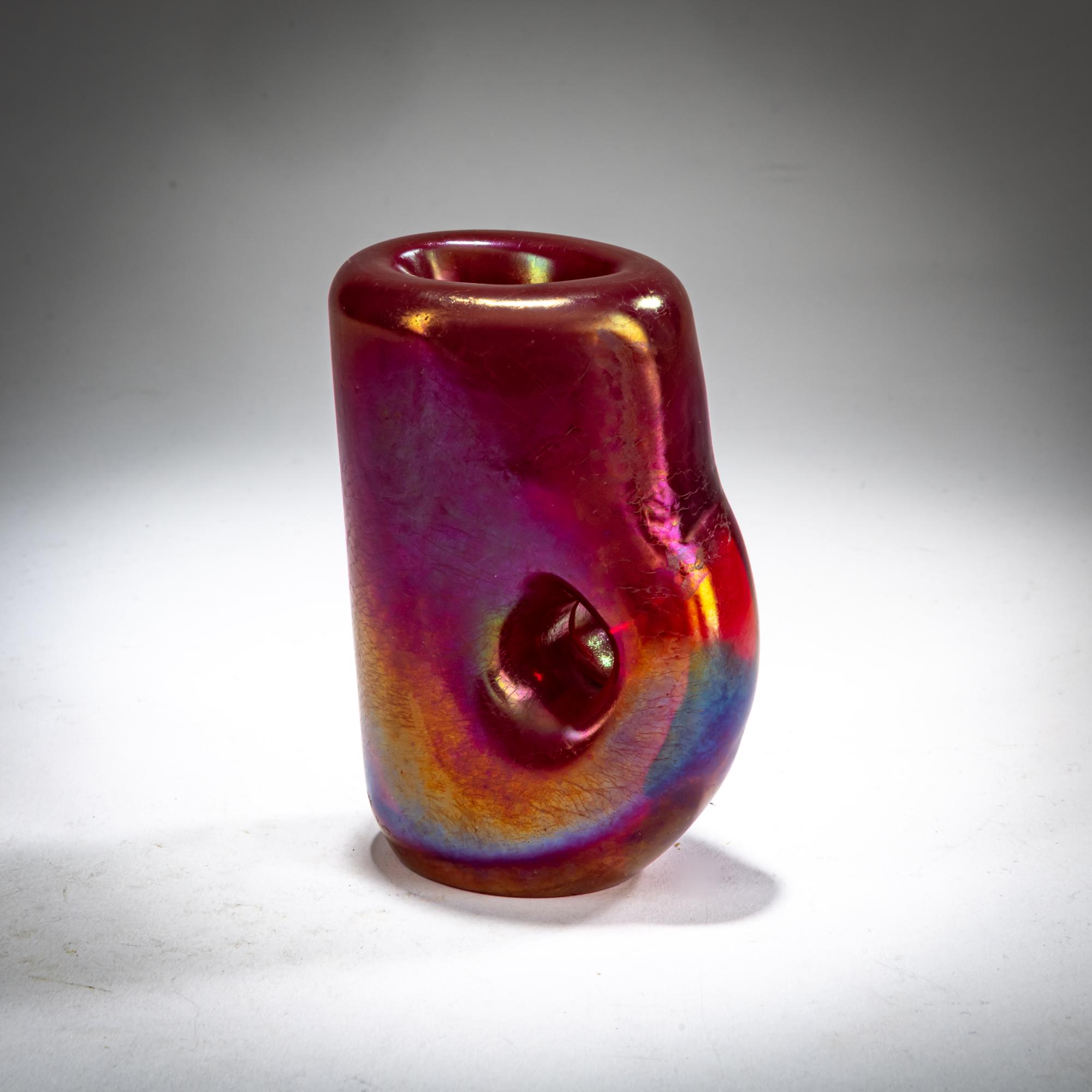 H. 10.2 cm. Execution: A.Ve.M. Cased glass, colorless and red, iridescent.