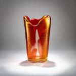 H. 30 cm. Glass, colorless and raspberry red, with gold glitter inclusions. Unsigned.