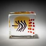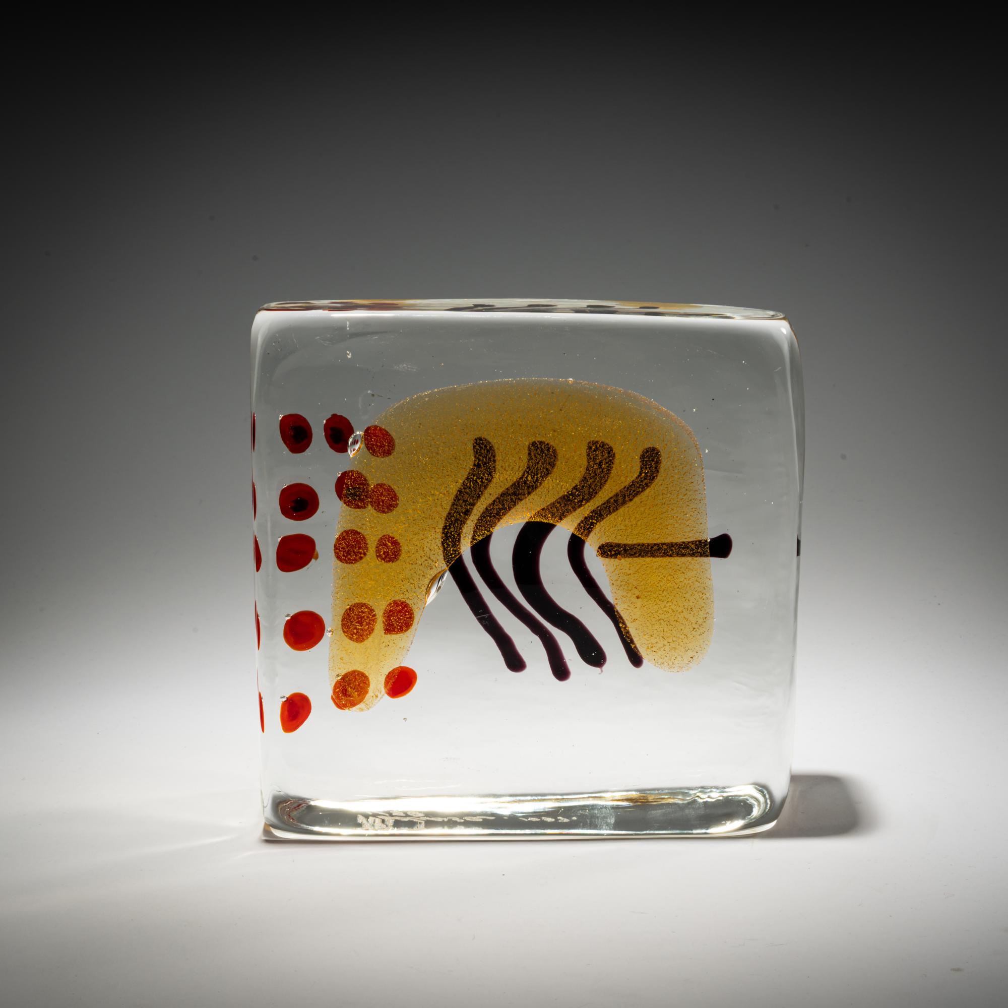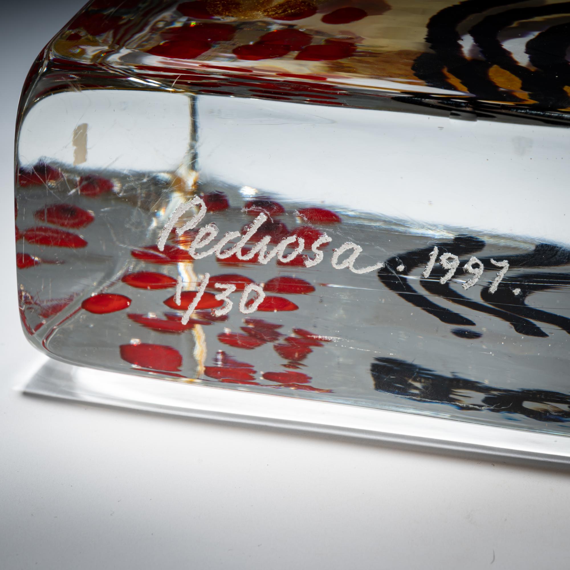 H. 17 cm, 17 x 6.5 cm. Colorless glass with polychrome inclusions. Bottom marked: PEDROSA 1997 1/30 (engraved).