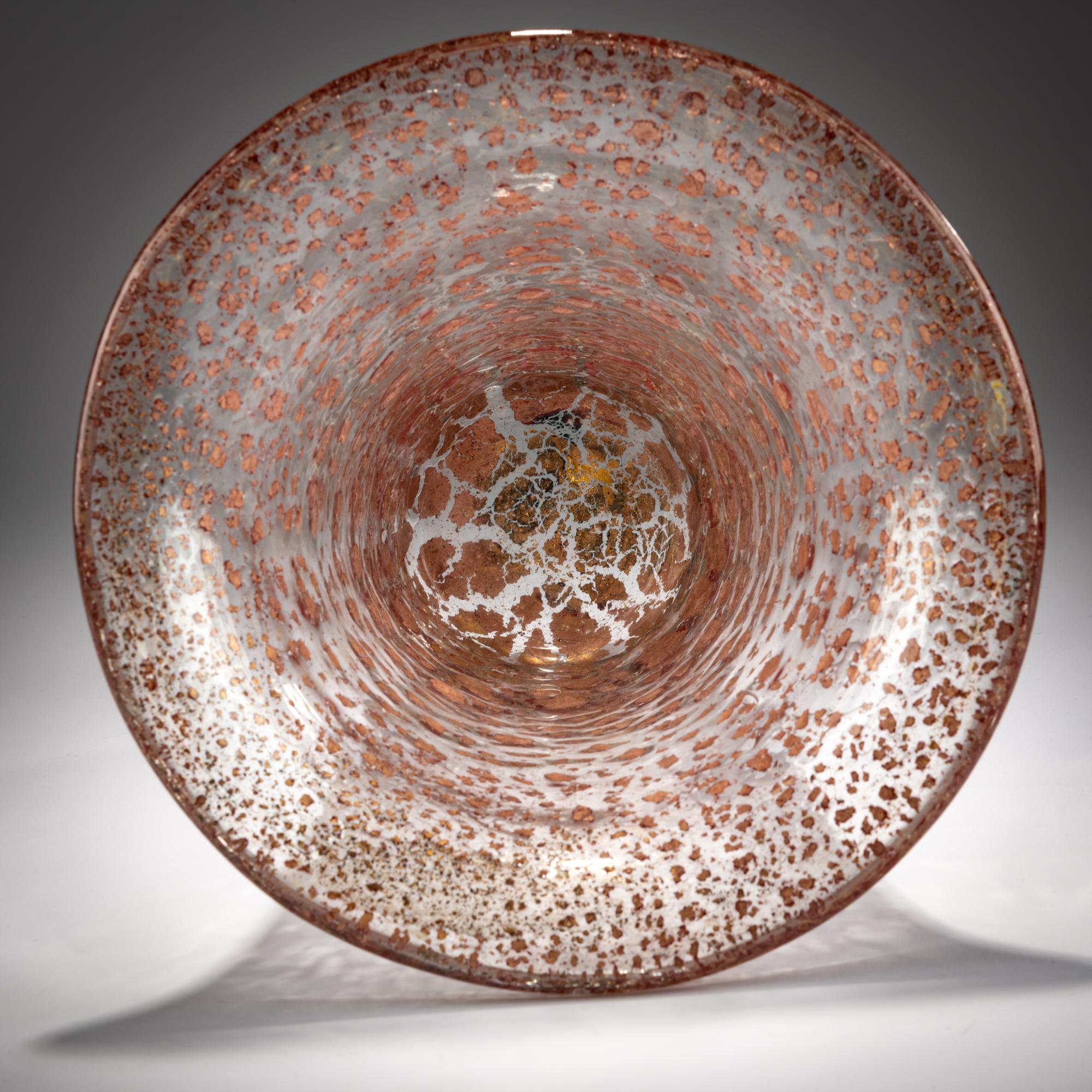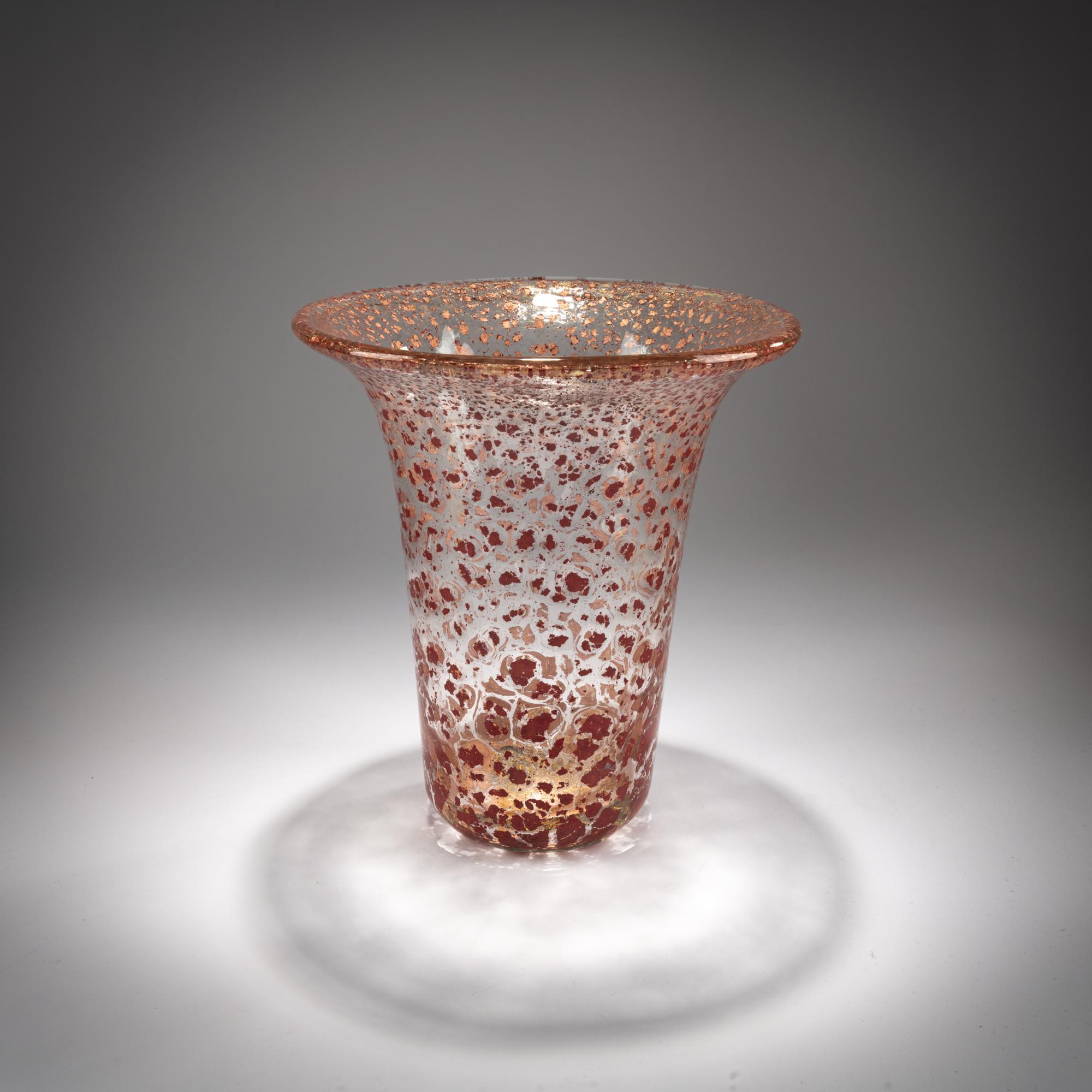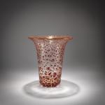 H. 24 cm. Execution: Barovier & Toso. Overlaid glass, colorless, with shattered, purple-backed gold foil inclusions. Bottom marked: barovier & toso murano (engraved).