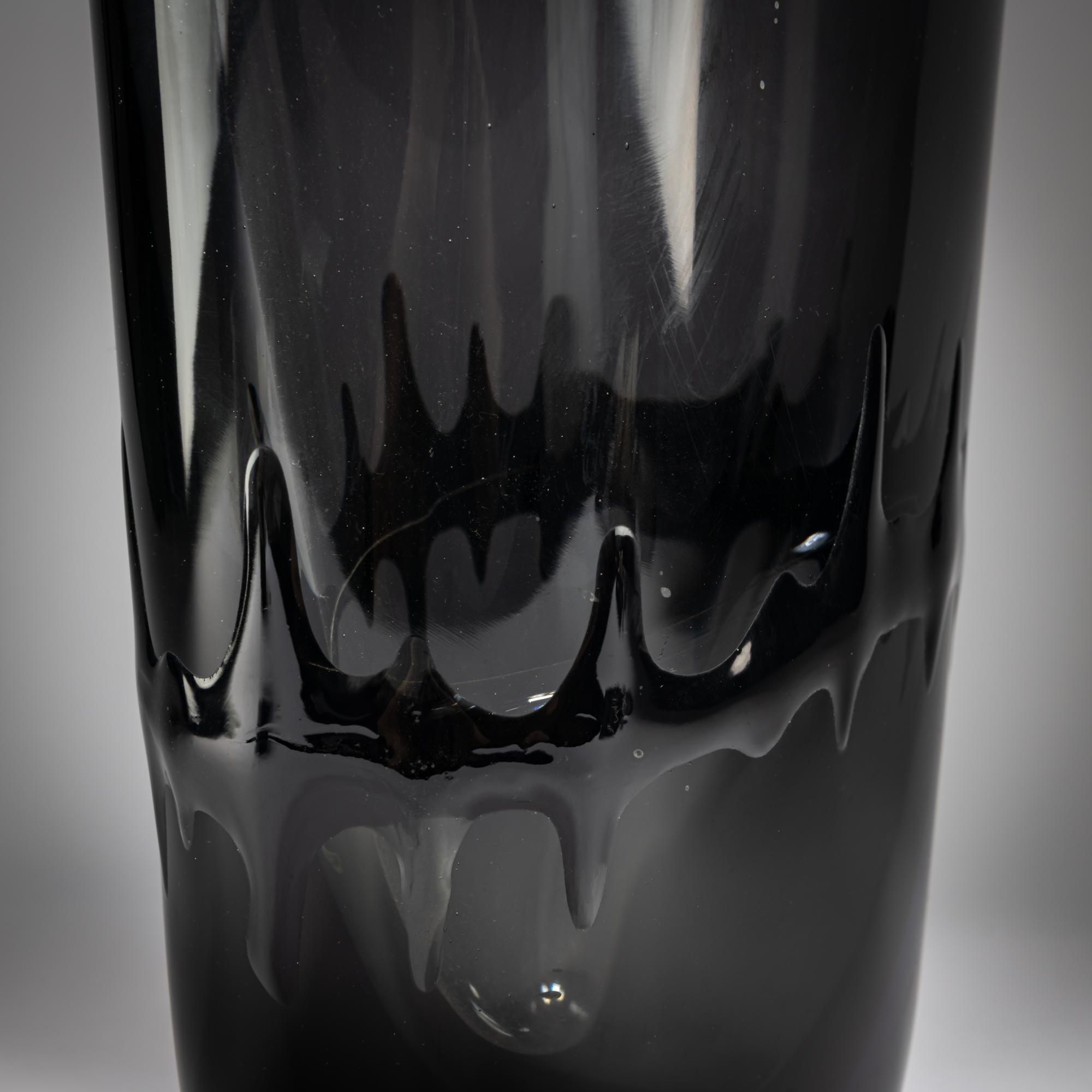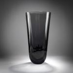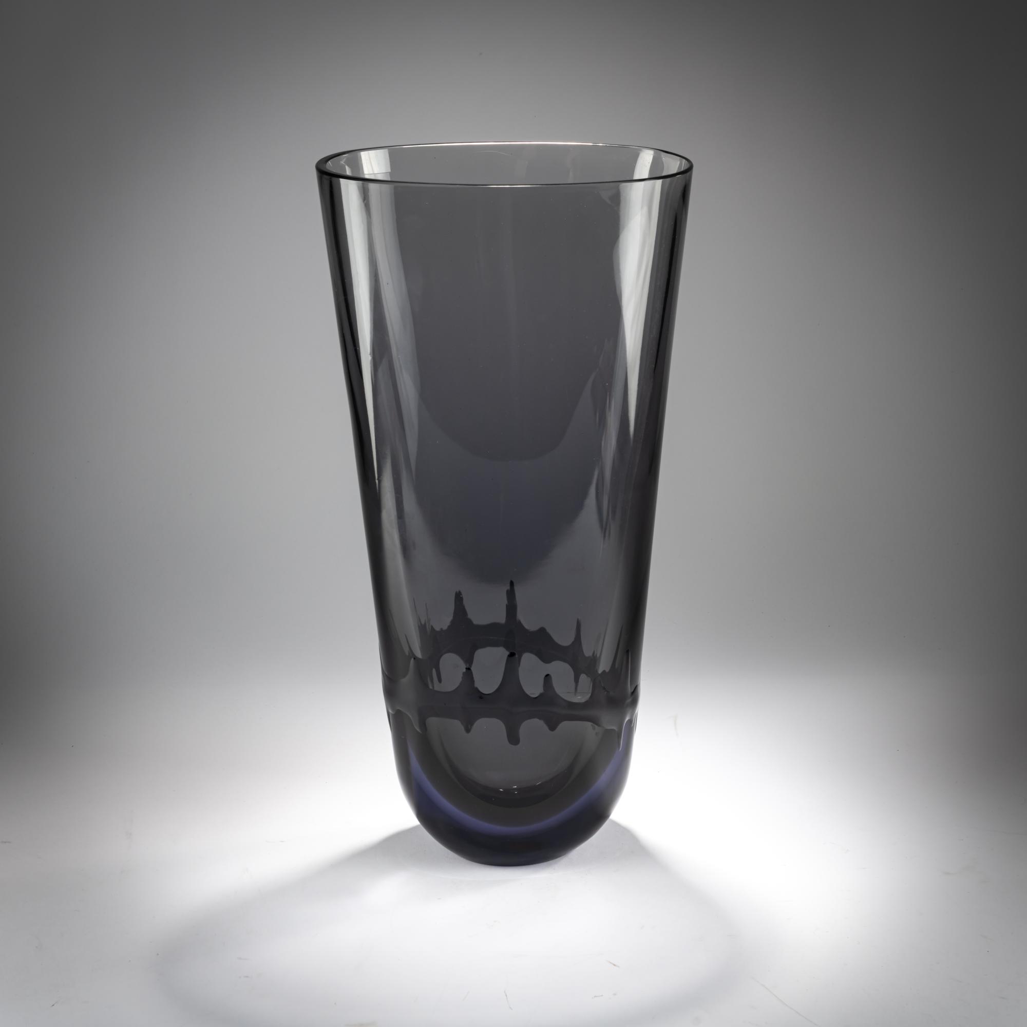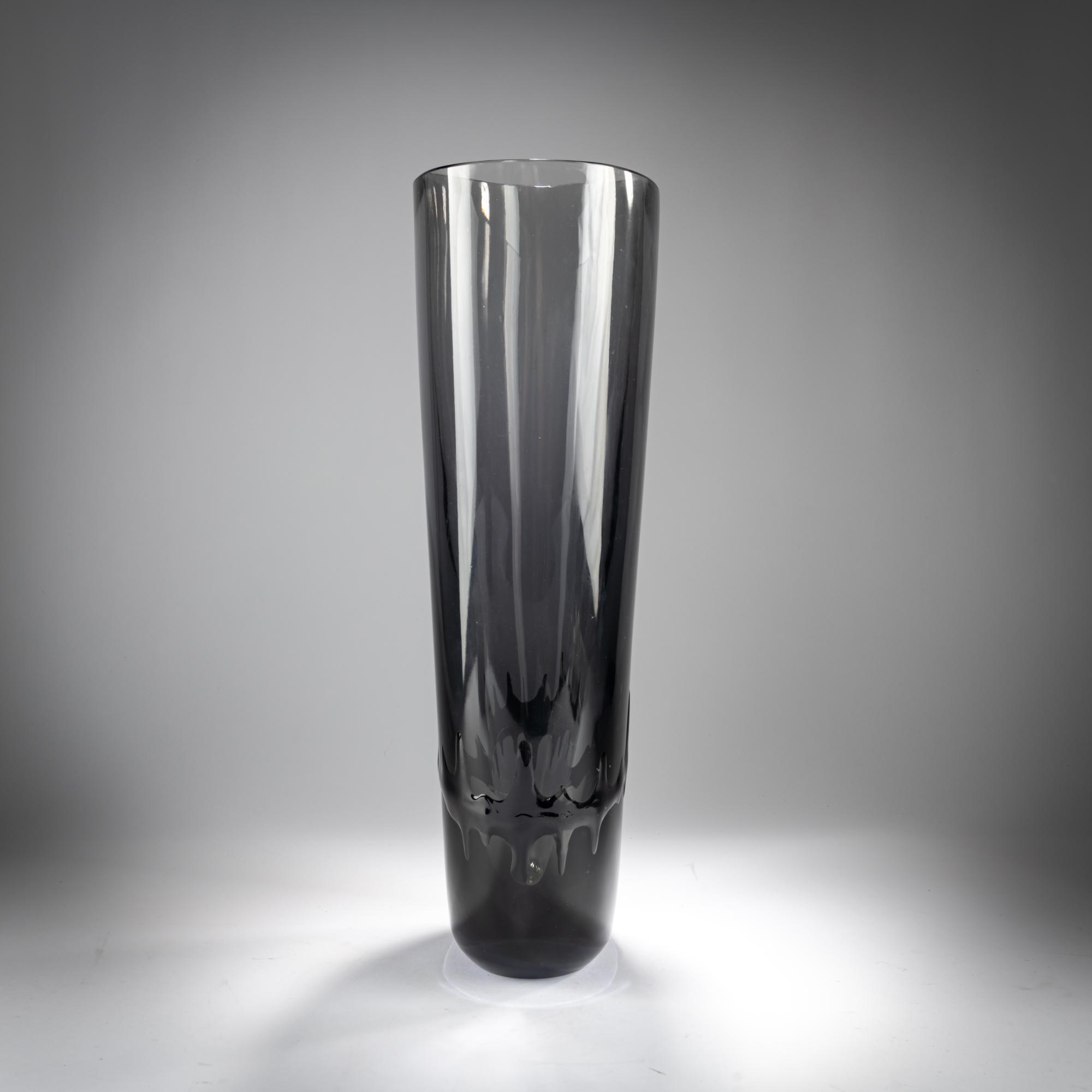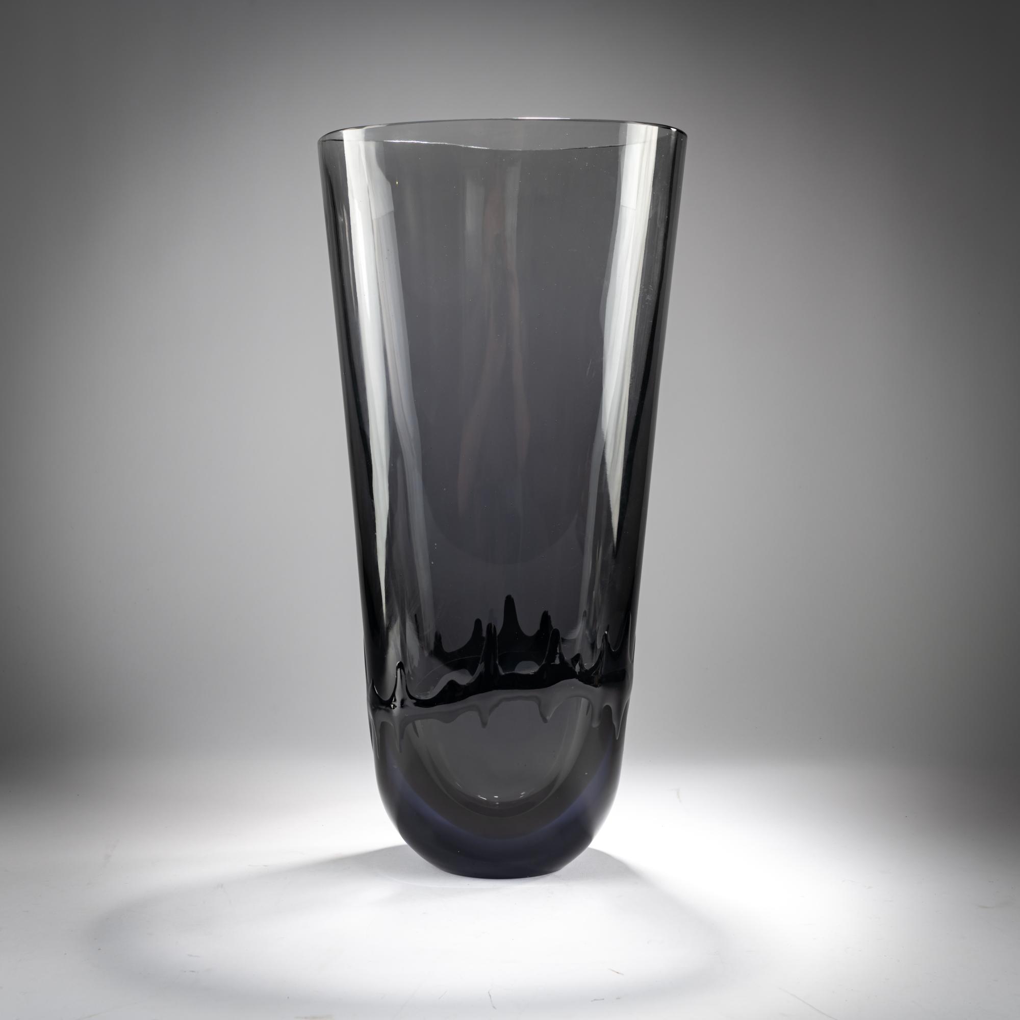 H. 49.2 cm. Execution: Seguso srl. Overlaid glass, colorless, gray and violet, with a fused oscillating band in deep violet in the lower third.