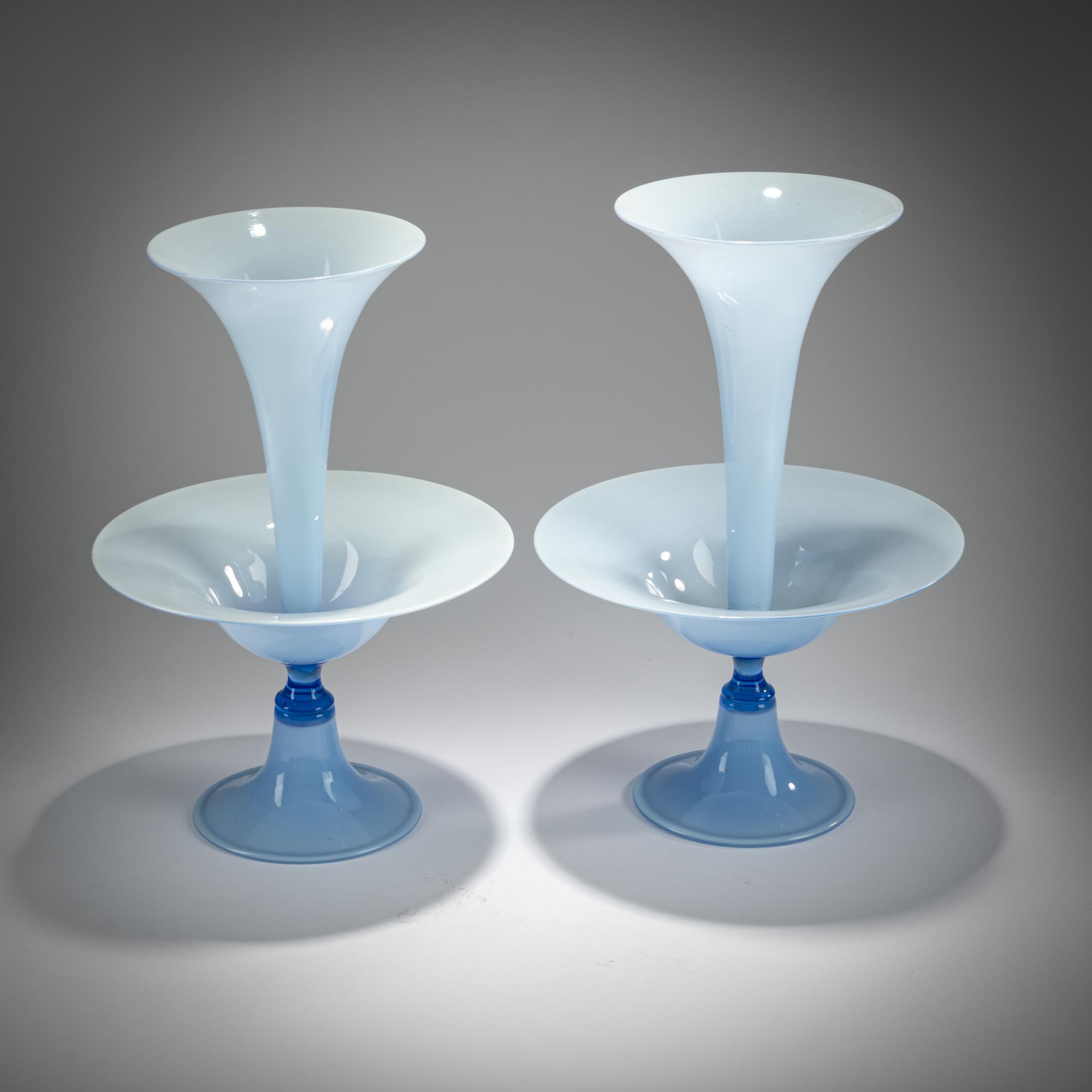 Model No. Z 236. H. 31 - 32.5 cm. Thin-walled overlaid glass, colorless, blue and milk white.