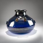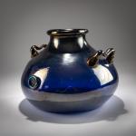 H. 24 cm, Ø 32 cm. Execution: Artisti Barovier (attributed). Deep blue iridescent glass.