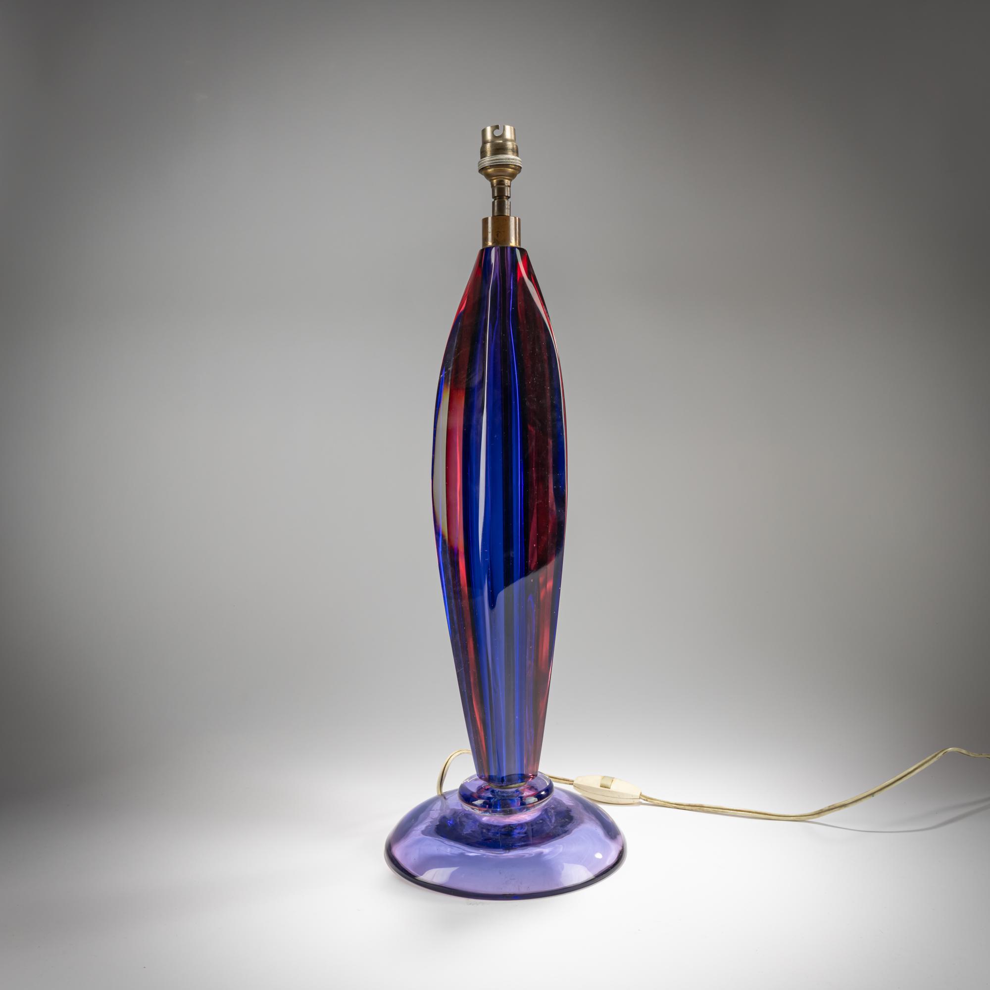 Model No. 9396, for the exhibition 'Seguso', Die Neue Sammlung Munich, 1953. H. 51 cm (overall). Execution: Seguso srl. Overlaid glass, pink and dark blue; tubular brass.