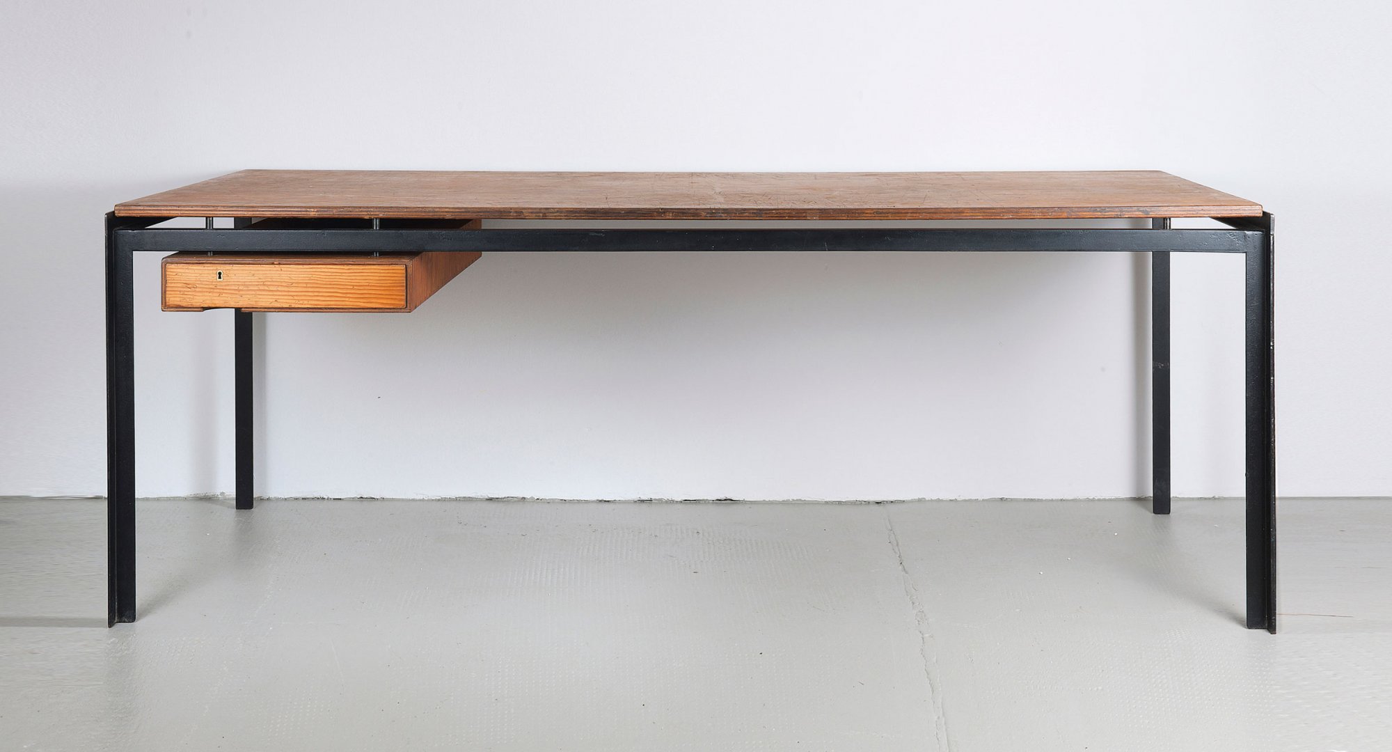 Poul Kjaerholm. Drawing table, designed in 1955. H. 68 x 185 x 85 cm. Made by Ruud Rasmussen, Copenhagen, c1955. Steel, painted black, Oregon pine plywood table top.