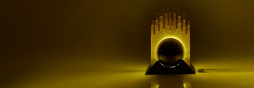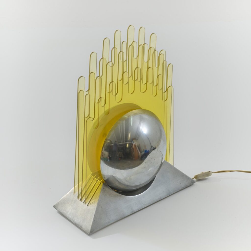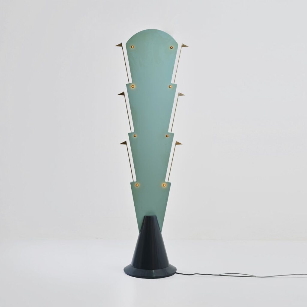 The collection focuses on designs from the 1960s to the 1990s. It includes key examples of post-war modernism, radical design, postmodernism, and the Memphis movement. Iconic designs such as the “Toio” floor lamp by Achille and Pier Castiglioni, Superstudio’s sculptural ‘Gherpe’ lamp, the experimental ‘Paramount’ and ‘MGM’ lamps produced by Alchimia, and the rare ‘Sfera’ lamp by Patrizia Innocenti and Sergio Gobbi illustrate Bernhard Serr’s interest in technical innovation combined with extraordinary aesthetics and pop culture. The well-known and classic lamps by Ettore Sottsass occupy a special place in this context.