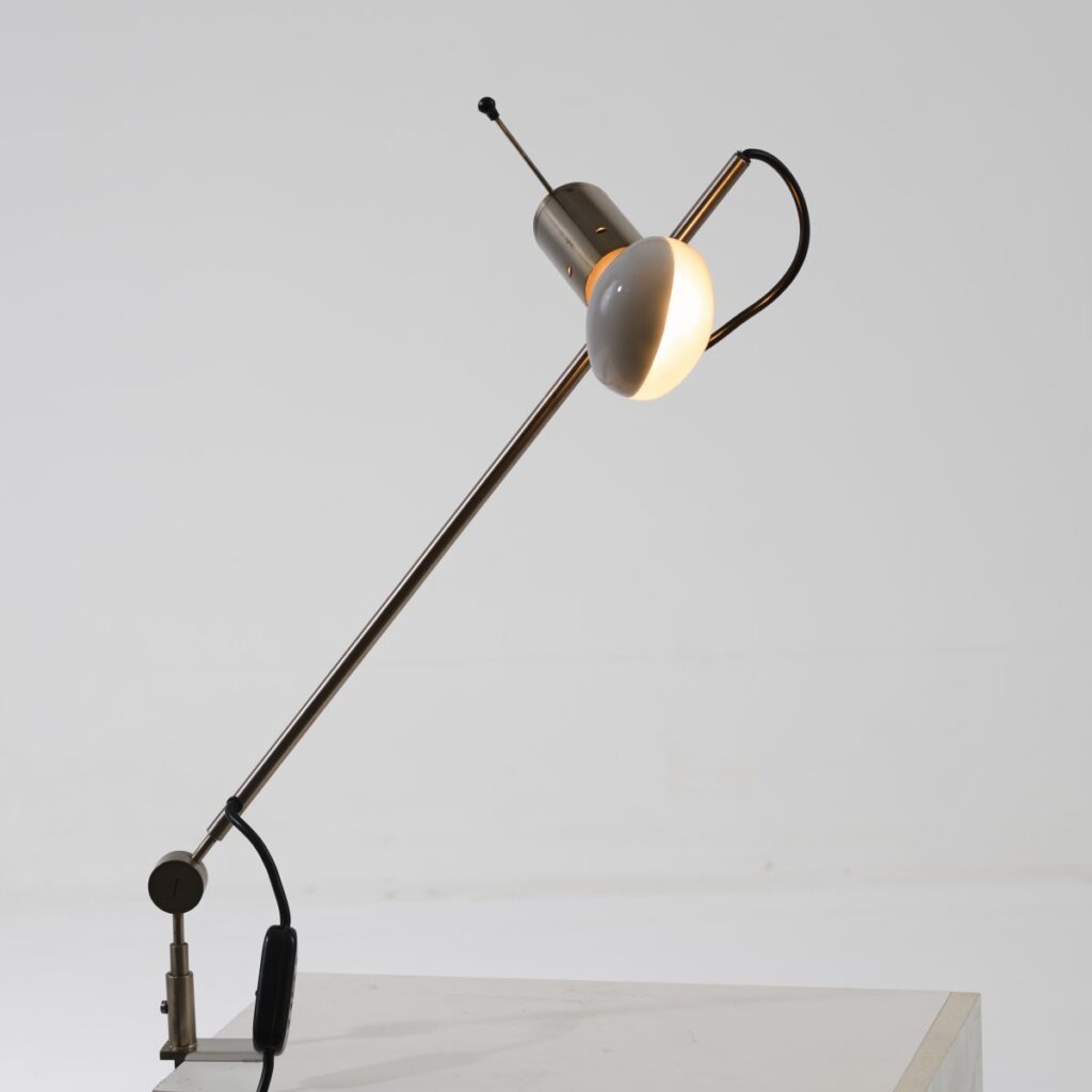 Many of the lamps in the collection reflect the designers’ desire to break with the conventional norms of design history. The collection includes lamps in which the exploration of technical and functional aspects dominates: one design that focuses on the essentials is the ‘255’ clamp lamp by Tito Agnoli, designed in 1954. The cylindrical socket for the light bulb is attached to a simple, narrow metal tube through which the cable is fed. The swiveling structure and height-adjustable socket ensure that the light source can be adjusted to the user’s needs in just a few simple steps.